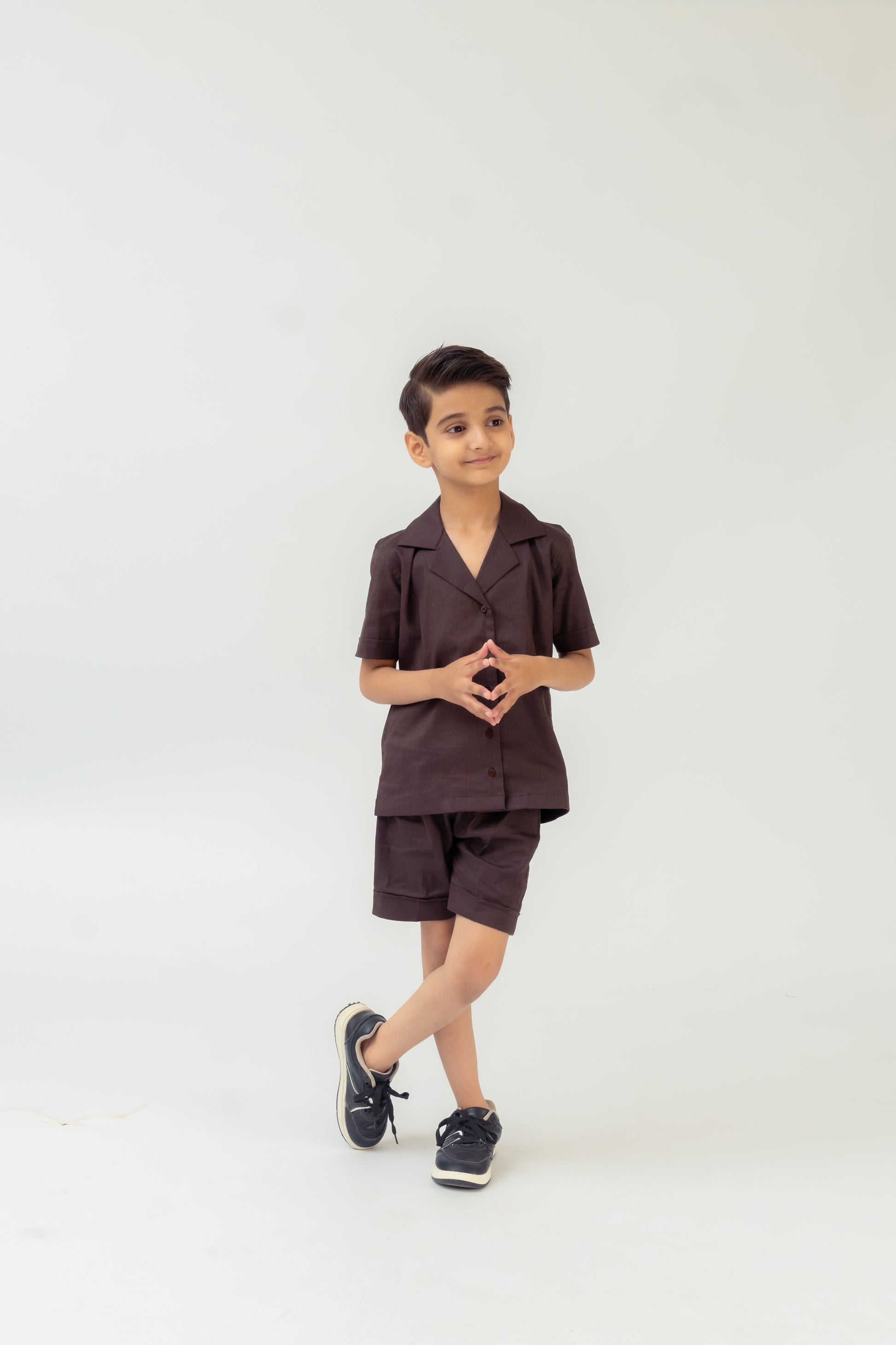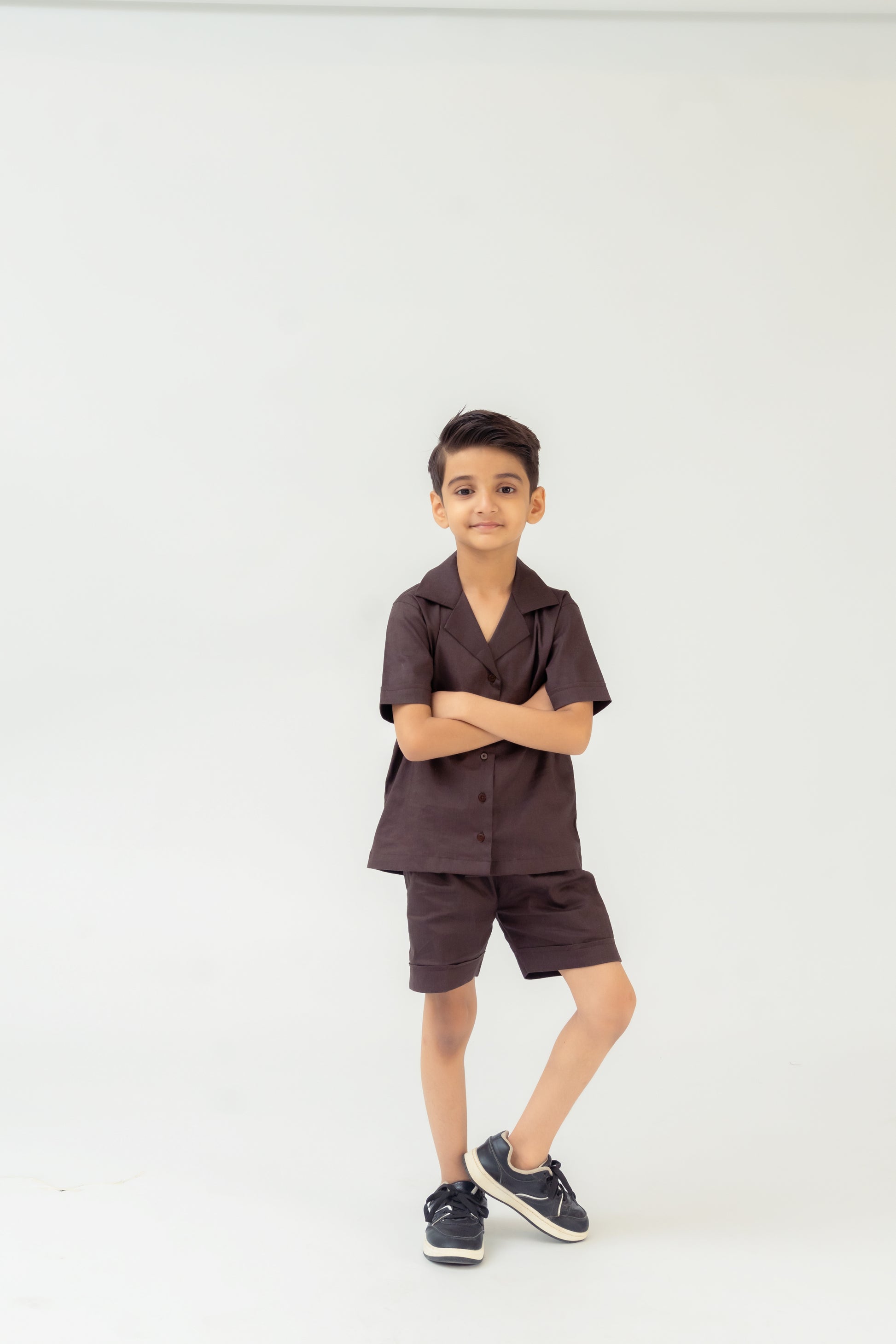 This warm brown co-ord set includes matching shorts for a stylish and fashionable outfit. Perfect for your little one's next play date or family outing. Stay in fashion and comfort with the Bruno Co-ord!